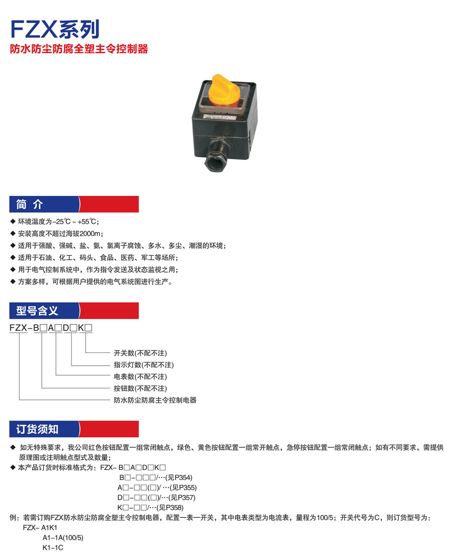 FZX系列防水防尘防腐全塑主令控制器